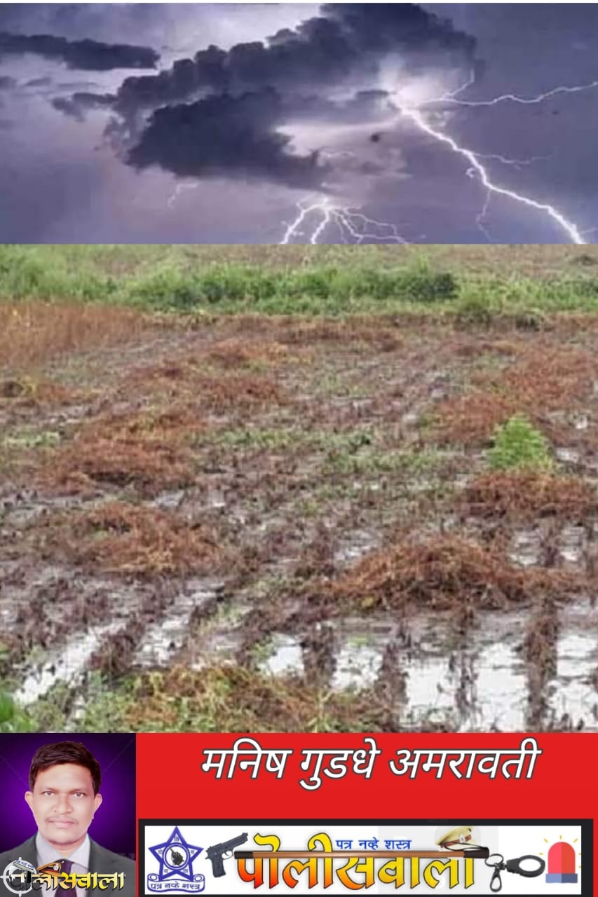 मनिष गुडधे @ अमरावती : शनिवारच्या रात्री अचानक धो-धो बरसलेल्या अवकाळी पावसाने संपूर्ण जिल्हा जलमय झाला. सलग तासभर सोसाट्याच्या वाऱ्यासह एकामागून एक सलग विजा चमकत होत्या, ठगांचा प्रचंड गडगडाट सुरु होता. त्यामुळे अर्ध्या जिल्ह्याला शनिवारची रात्र चक्क जीव मुठीत धरून काढावी लागली. शनिवारी रात्री जिल्ह्यात एकूण ६० मिलीमीटर इतका म्हणजेच अतिवृष्टी पासून केवळ ५ मिमी कमी इतक्या मोठ्या प्रमाणात वादळी वाऱ्यासह धो-धो बरसलेल्या या पावसांत ९१९ घरे पडली असून जिल्ह्यात ११५३.९४ हेक्टरवरील केळी, संत्रा, मुंग, आंबा, भाजीपाला, भुईमूग, गहू, कांडा, तीळ, ज्वारी पीक पूर्णतः उध्वस्त होऊन प्रचंड प्रमाणात नुकसान झाले आहे.