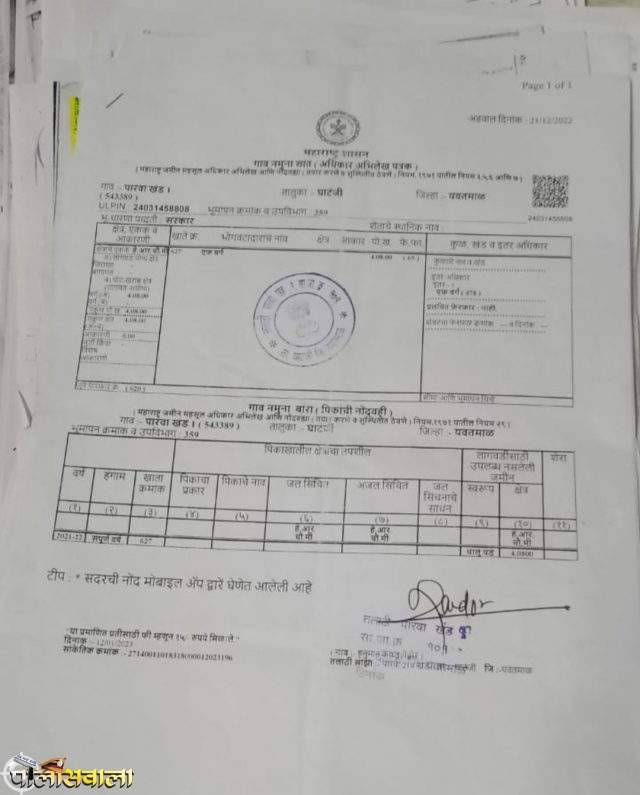 घाटंजी तालुक्यातील पारवा येथे खोटे व बनावट कागदपत्रे तयार करून खोट्या कागदपत्राच्या आधारे खोटे करारनामे करुन खोटे खरेदी खत नोंदवुन शासनाची फसवणूक केल्या प्रकरणी गुन्हे दाखल करण्याची मागणी..!