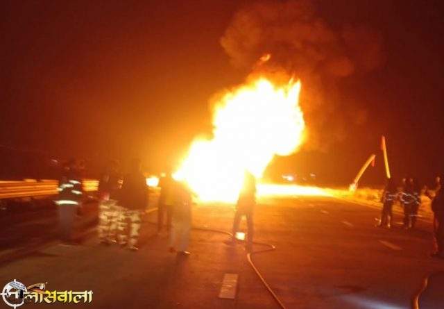 समृध्दी महामार्गावर पुन्हा अग्नितांडव, टायर फुटल्याने ट्रक जळाला ,