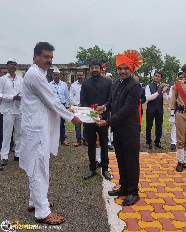 तहसीलदार विजय साळवे यांच्या हस्ते तलाठी भारत लढे यांना स्वातंत्र्य दिनी सर्वोत्कृष्ट पारितोषिक प्रदान..!