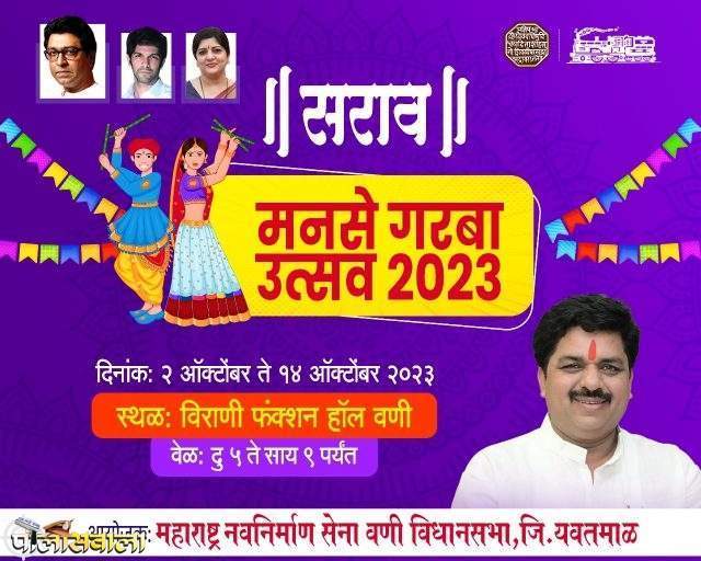 मनसेकडून विभागात सातत्याने विविध सण समारंभाचे आणि उत्सवाचे आयोजन करण्यात येते. नुकत्याच पार पडलेल्या दहीहंडी महोत्सवास जनतेचा उत्स्फूर्त प्रतिसाद दिसून आला. आता यानंतर मनसे कडून दांडिया गरबाचे आयोजन करुन पुन्हा एकदा वणीकर जनतेला सांस्कृतिक कार्यक्रमाची मेजवानी देण्यात येतं आहे.