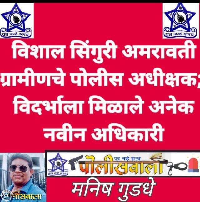 नक्षल विरोधी अभियान, विशेष कृती दलाचे (एएनओ) अधीक्षक विशाल आनंद सिंगुरी यांच्याकडे अमरावती ग्रामीण अधीक्षकपदाची जबाबदारी देण्यात आली आहे. सोमवारी संध्याकाळी गृह मंत्रालयाने याबाबतचे आदेश जारी केले. सिंगुरी यांच्या व्यतिरिक्त गृह मंत्रालयाने अधीक्षक आणि अतिरिक्त अधीक्षक दर्जाच्या इतर अधिकाऱ्यांच्याही बदल्या केल्या आहेत. सिंगुरी यांची ऑगस्ट महिन्यात ग्रामीण पोलीस अधीक्षक पदावरून एएनओमध्ये बदली करण्यात आली होती.