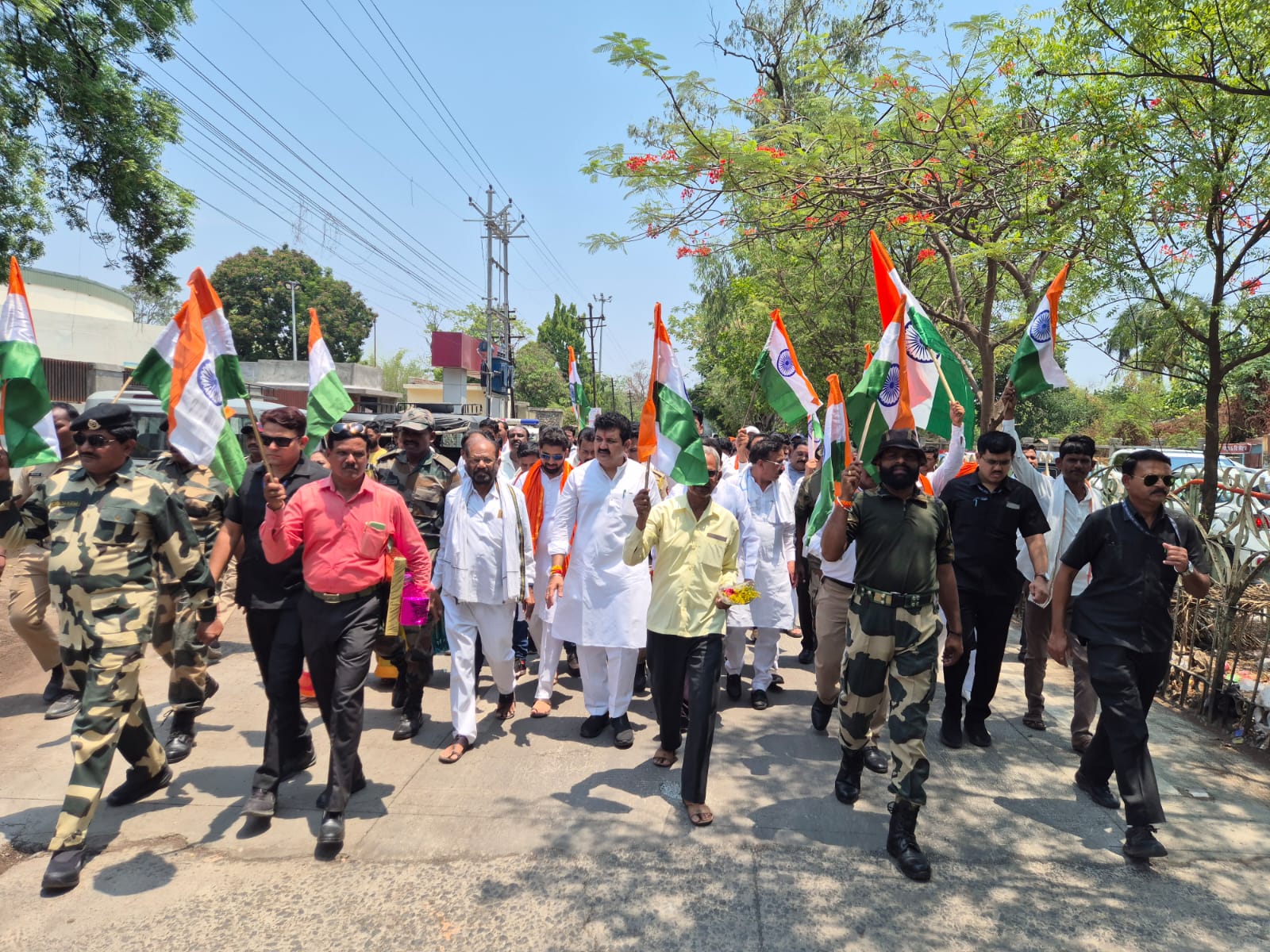 राष्ट्रप्रथम ही भावना मनात बाळगून सर्व भारतीय जनता सैन्यासोबत आहे, हा संदेश देण्यासाठी शिवसेना पक्ष मुख्य नेते तथा राज्याचे उपमुख्यमंत्री एकनाथ शिंदे यांच्या संकल्पनेतून शिवसेनेच्या वतीने आज रविवारी स्थानिक शिवतीर्थ येथे तिरंगा सन्मान व भारतीय सैन्यातील माजी सैनिकांचा सन्मान सोहळा आयोजित केला होता. त्यावेळी ते बोलत होते. यावेळी शिवसेनेचे जिल्हा संपर्क प्रमुख हरिहर लिंगनवार, जिल्हाप्रमुख श्रीधर मोहोड, माजी जिल्हाप्रमुख पराग पिंगळे यांच्यासह वैशाली मासाळ, विशाल गणात्रा, भाऊराव ढवळे, विनोद मोहितकर, यशवंत पवार, राजकुमार वानखेडे, प्रवीण निमोदीया, सचिन महल्ले, गजानन डोमाळे, विष्णू उकंडे, रवी राठोड, संजय रंगे, योगेश वर्मा, निलेश बेलोकर, आकाश कुटेमाटे, महेश पवार, रमेश अग्रवाल, नामदेवराव खोब्रागडे, कपिल पाटील, संतोष चव्हाण, अविनाश कदम, उद्धवराव साबळे आदी प्रामुख्याने उपस्थित होते.