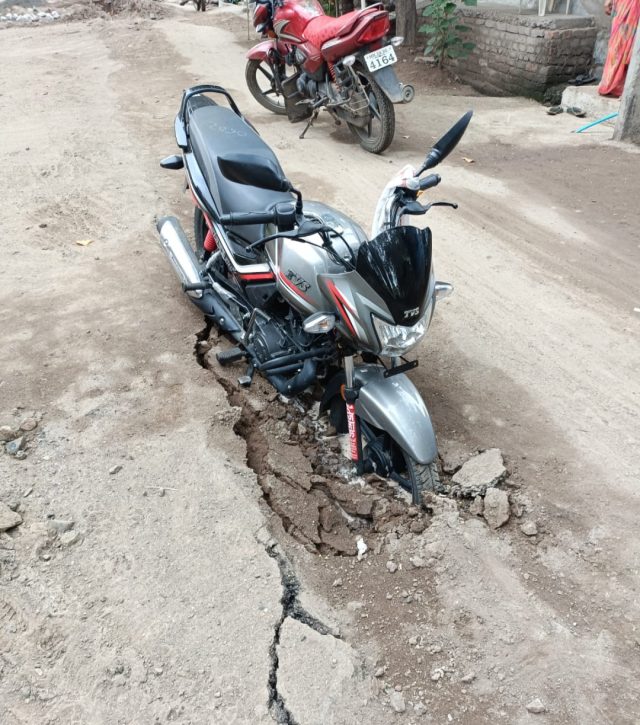 अचानक मोटर सायकल फसली रस्त्याच्या मधो मध ,