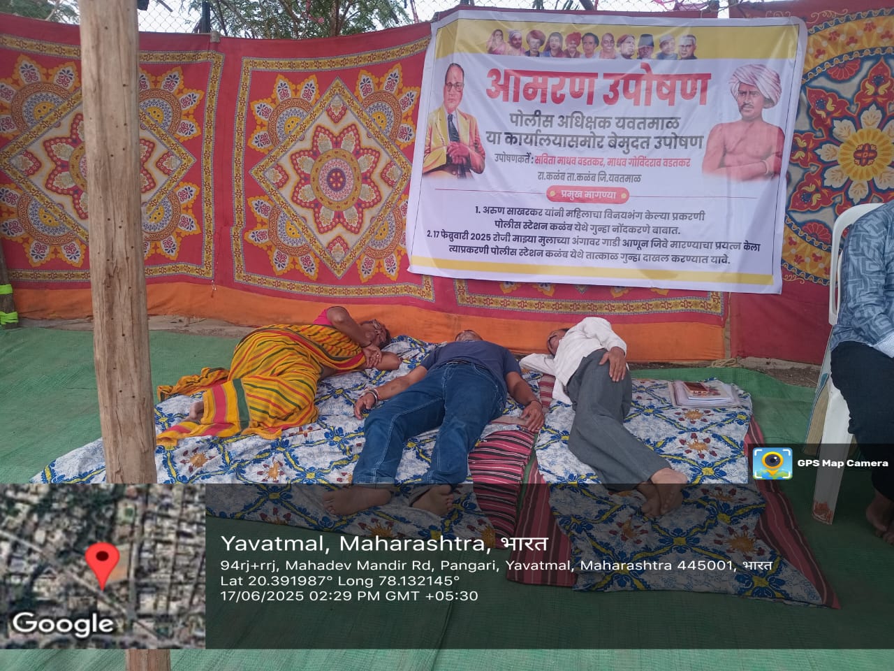 यवतमाळ : कळंब तालुक्यातील सविता वडतकर या कळंब येथील रहिवाशी असून त्याच परिसरात रहिवाशी प्रेम अरुण साखळकर या इसमाविरोधात जीवे मारण्याच्या धमक्यांसह विविध गुन्ह्यांची तक्रार दाखल केली असतानाही, संबंधित पोलीस ठाण्याचे ठाणेदार यांच्याकडून कोणतीही ठोस कारवाई न झाल्याने पीडित कुटुंब भयभीत झाले असून त्यांनी आजाद मैदान, यवतमाळ येथे आमरण उपोषण सुरू केले असून आज या उपोषणाला दोन दिवस झाले आहे.