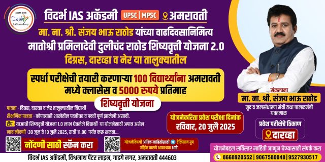 मातोश्री प्रमिलादेवी दुलीचंद राठोड शिष्यवृत्तीसाठी 20 जुलैला परीक्षा