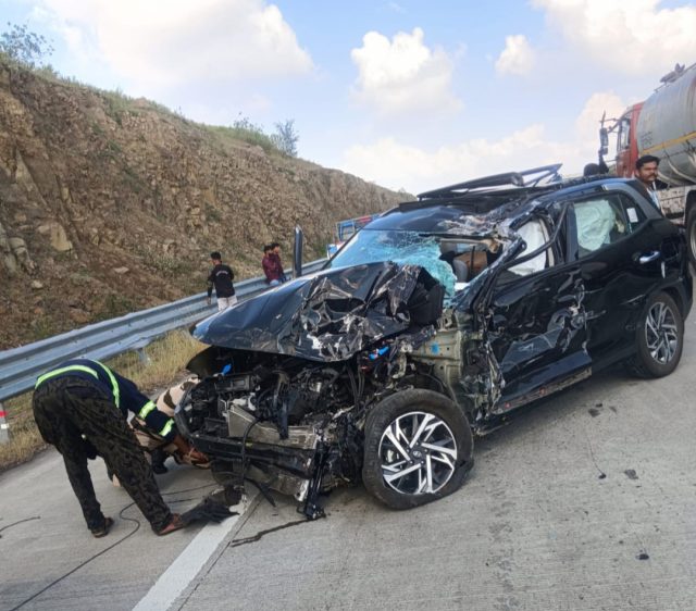 टायर तपासत असताना चाकाखाली आल्याने क्लिनरचा मृत्यू, कार कंटेनरवर आदळली