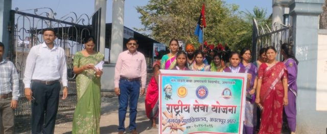 अचलपूर :श्री जगदंब विणकर शिक्षण संस्था संचालित जगदंब महाविद्यालय, अचलपूर येथे राष्ट्रीय सेवा योजना (रासेयो) युनिटच्या वतीने १२ जानेवारी रोजी राष्ट्रमाता जिजाऊ व स्वामी विवेकानंद जयंती उत्साहात साजरी करण्यात आली. यानिमित्त विद्यार्थ्यांनी रॅली काढून भारताच्या विविधतेतील एकतेचा संदेश देणारे पथनाट्य सादर केले.
